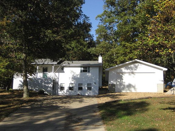 MOTIVATED SELLER!!!This 'family friendly' home has 2700 square feet of living area and tons of storage space too. Situated on 1.38 acres with lots of trees and privacy and close to town too! There is a living room with zero clearance fireplace on the ground floor, kitchen with lots of oak cabinets new in 2011-12 and appliances included. The living room has a gorgeous curio cabinet that stays with the home. There's a utility room, one-half bath and a bedroom on this lower level. A wide staircase leads up to a den with built-in cabinets and a door to the deck, a full bath off the hall, four more bedrooms with the master having an adjoining 3/4 bath and large walk-in closet. One of the upper bedrooms has a door to an upper deck overlooking the grounds and lots of trees. The 16 X 20 deck gives plenty of room for entertaining and enjoying the great outdoors. The 22 X 30 detached garage has an insulated overhead door with keyless entry. It's perfect for your vehicles and/or a workshop.