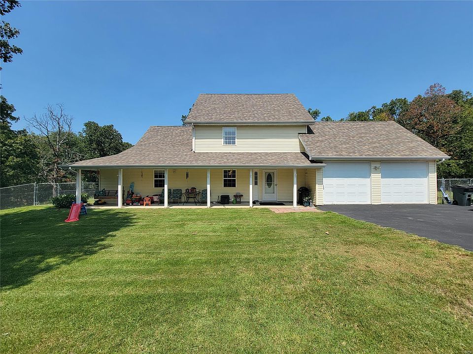 Fantastic house on MORE THAN SIX ACRES! Three level home conveniently located close to Lake of the Ozarks and Lebanon. Property has great curb appeal including long circle driveway and more than a quarter acre flat FENCED BACK YARD. You'll appreciate the home is tucked far away from the road which is perfect for pets and children and large gatherings. Rain won't spoil your good time. Plenty of room for everyone on the COVERED FRONT PORCH. Home has huge kitchen and dining area, but the real gem is the enormous living room. Plenty of room for the whole family or a great spot to keep an eye on children and pets in the back yard. Need some privacy? Head upstairs to the SECOND LIVING AREA. This large room is perfect for some quiet time or focusing on your favorite hobby. Home offers lots of options for bedroom configurations. And what a great location - river access is just minutes away. This property is perfect for COUNTRY LIVING!