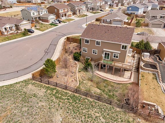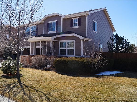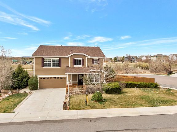 Charming move-in-ready Home on a Corner lot at Culdesac in the coveted Springvale Community! Enjoy evening sunsets looking out over your Open Space back yard with panoramic Mountain views from your wrap around deck! Huge main level is light, bright and open and boasts beautiful hardwood floors. You'll Love this Large kitchen with stainless appliances and island which opens to the Living area. Relax in your Giant Master bedroom with En-suite 5 piece bath, soaking tub and big walk in closet. Big loft upstairs and fully finished walk out basement downstairs including 2 additional bedrooms, bathroom with shower, built in surround and recessed lights! New Roof,flawless new exterior paint and new A/C unit in 2018. Lots of extras including fruit trees, security system, covered porch and Sunsetter awning over the deck. Close to shopping and walk out the back to the adjacent park and walking trails. Just minutes to New Outlets and easy Access to E-470.Don't miss this opportunity