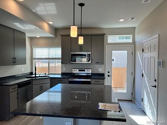 The Surrey is one of our most popular floor plans. With three bedrooms, two-and-a-half bathrooms and a two-car garage, the Surrey is perfect for families or anyone who wants extra space. The flex space can be used as an additional entertainment area, game room, or craft room, and opens to a roof top deck with beautiful mountain views. The large eat-in island is perfect for gatherings of family and friends. Designer finishes including granite countertops and luxury vinyl planking adds the feel of luxury without the cost. This quick move-in home won’t last long.