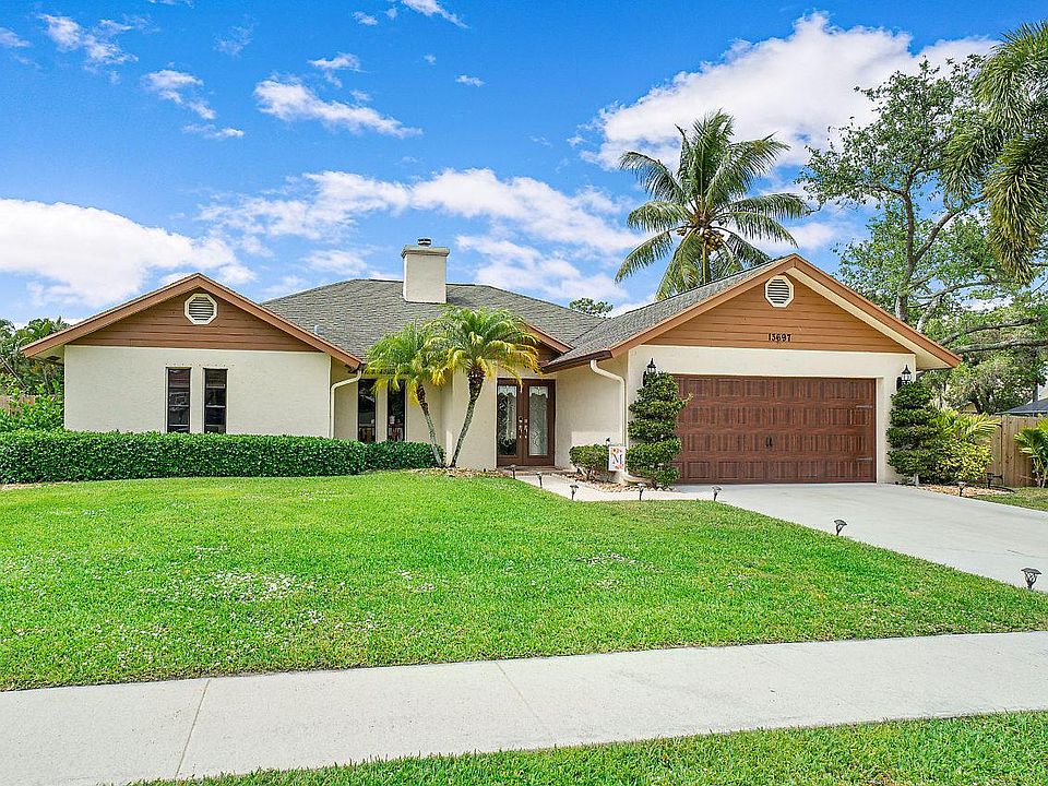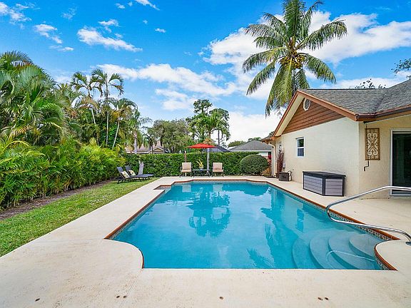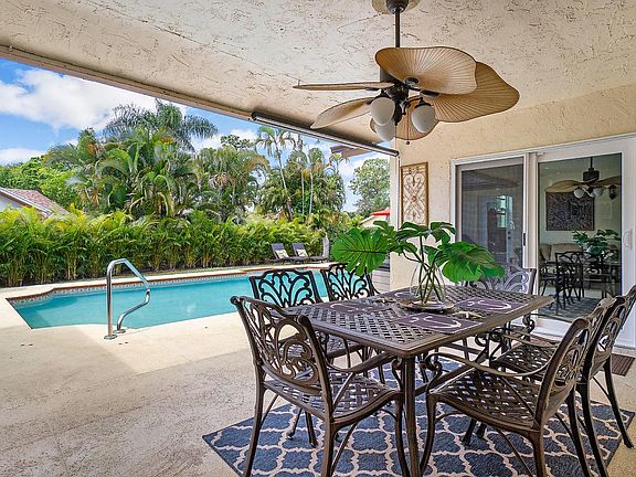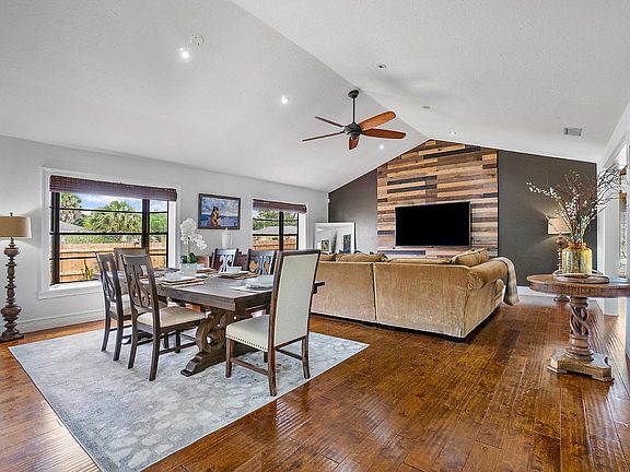 This is the one!! Rare 4 bedroom CBS POOL home in desirable Sugar Pond with NO HOA on a large corner lot. Enjoy your tropical backyard with an abundance of trees, Recently refinished diamond brite pool, covered patio and privacy fence. The elegant kitchen has granite and NEW $7,500 Samsung stainless steel package and a new wine cooler bar area great for entertaining .The spacious interior includes engineered wood flooring in living areas with tall baseboards and cathedral ceilings and a real wood burning fireplace in living with vaulted wood paneled ceiling and LED lighting. New Samsung Washer and Dryer and plenty of cabinets in laundry. One of the 2 A/C units is almost new, newer water heater, and newer impact garage door. All back doors and back windows are all impact rated. Cont..
