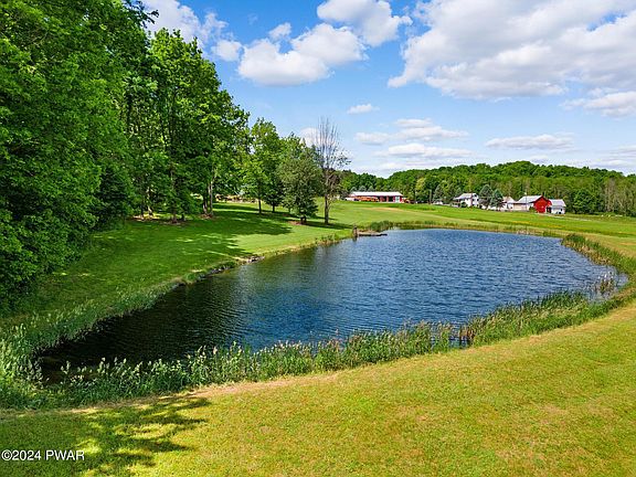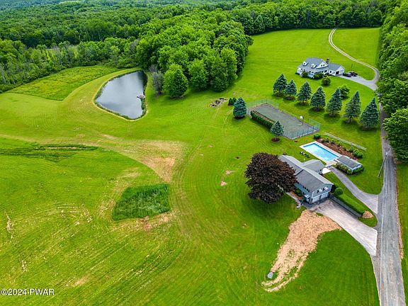 Amazing scenic views in every direction. This property will astound you with unending amenities, including a 3 bedroom ,2 bath house, private pond, inground pool, tennis courts, 9+/- acres of manicured grounds, and extensive view of mountains and valleys. Peace and serenity will abound as you sit on the covered front porch and gaze at your private pond and the views of nature, not neighbors. Summer entertainment at your beck and call with your inground swimming pool and tennis courts or change the tennis court to pickle ball. The house is extremely well maintained. 3 bedroom, 2 bath, with a Family room that has drive-up access for your guests , and perfectly located at the rear of the home adjacent to the pool and tennis courts. 2 woodburning fireplaces to help warm your home and your soul! A finished basement provides bonus space for family living and social gatherings. The 2-car garage is below the living space and has adjacent access to the finished basement. Your cars will stay dry and clean and so will you! This home has an open-flowing floor plan, with many amenities that make this home a place for living, relaxing, and rejuvenation. Great attention to detail was exercised when built and improved over its lifetime. Its time for a new chapter of living. Enjoy its present beauty, add your personal updates, and establish your home for life. 15 Minutes +/- to Lake Wallenpaupack , Easy commute to Hamlin for local shopping needs, and 30 minutes +/- to Scranton region. 2 hours +/- from Nyc and 2.5 hours +/- from Phila.. This one of a kind and truly amazing property wont last long. Don't delay, call Jeff Today and schedule your showing appointment.