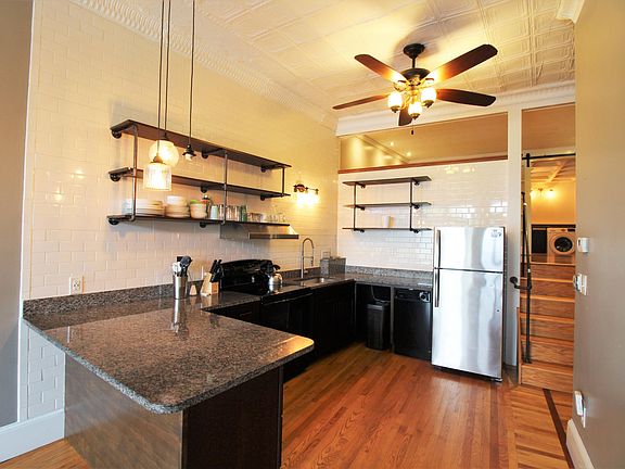 A piece of Bangor's history restored! This townhouse combines both the classic craftsmanship from the 19th century and a newly renovated Modern style apartment in one. Down to the studs, the first floor apartment welcomes an open concept kitchen/livingroom area leading up to a loft bedroom, bathroom & laundry room. Complete with subway tile in the kitchen and shower, granite countertops, hardwood floors, and plenty of natural light. Upstairs you'll find the Penthouse apartment with 3 levels of living space. Level 1 hosts a large kitchen that has lots of storage, beautiful paned glass windows, and a back stairway to the second level. From there, walk through the dining room into the living space at the bottom of the grand stairway, with two sets of french doors, one leading down to the Main Street entrance and the other to the formal living area with fireplace. Up on the second level you'll find 2 bedrooms, a full bath in the hallway and another full bath in the back bedroom. On the third level you have access to the rooftop deck with plenty of room to entertain guests while enjoying the view of the city. Special features include Brazilian Cherry flooring throughout, tiled bathrooms, a new natural gas furnace and new natural gas hot water heater and new sprinkler system, as well as many more updates! Make sure to view the video and 3D Tour!