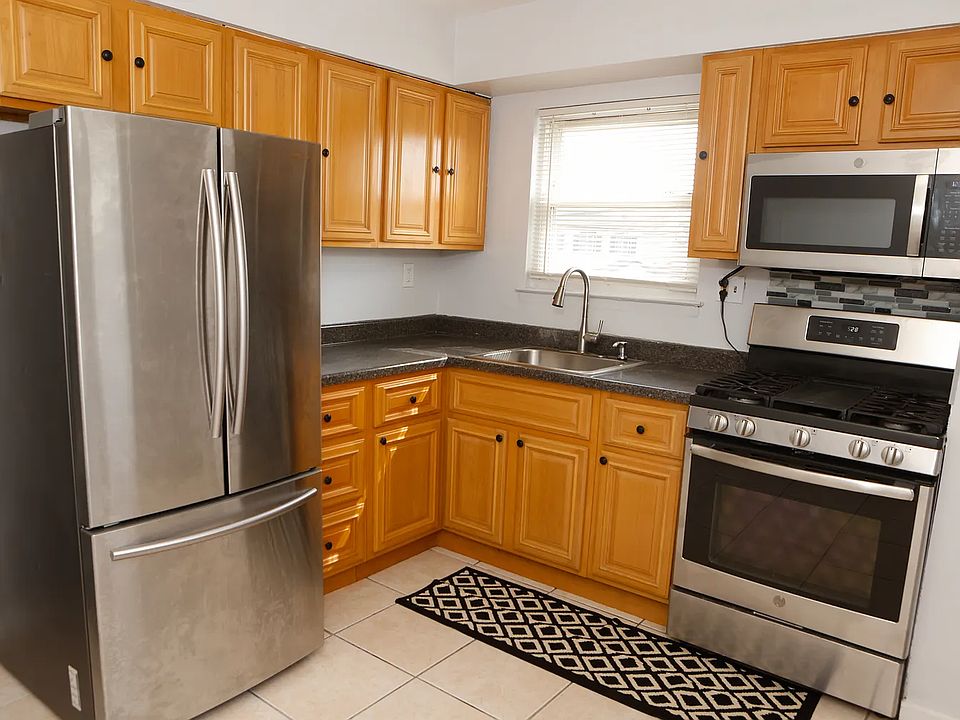 Natural lightTop floorStainless steel appliancesLarge windowsModern kitchenNicely tiled kitchen