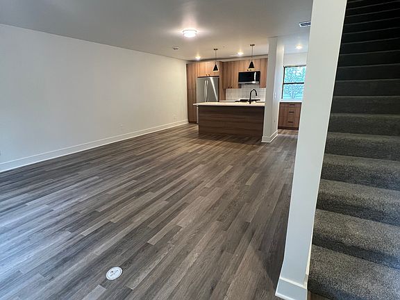 Newly built last year! Half bath, kitchen and living room on the main floor and two bedrooms, laundry, and a full bathroom upstairs. Off street parking spot! Central air and heat. Tenant pays electric and owner pays everything else, including fiber internet. Pets allowed! Nearby lots of amenities and the freeway. Tenant has to provide a router and pay electricity. Owner pays everything else including fiber internet. One time pet fee of $300/pet. No smoking. Laundry in unit, off street parking spot. Minimum 640 credit score and income of 2.5x the rent.