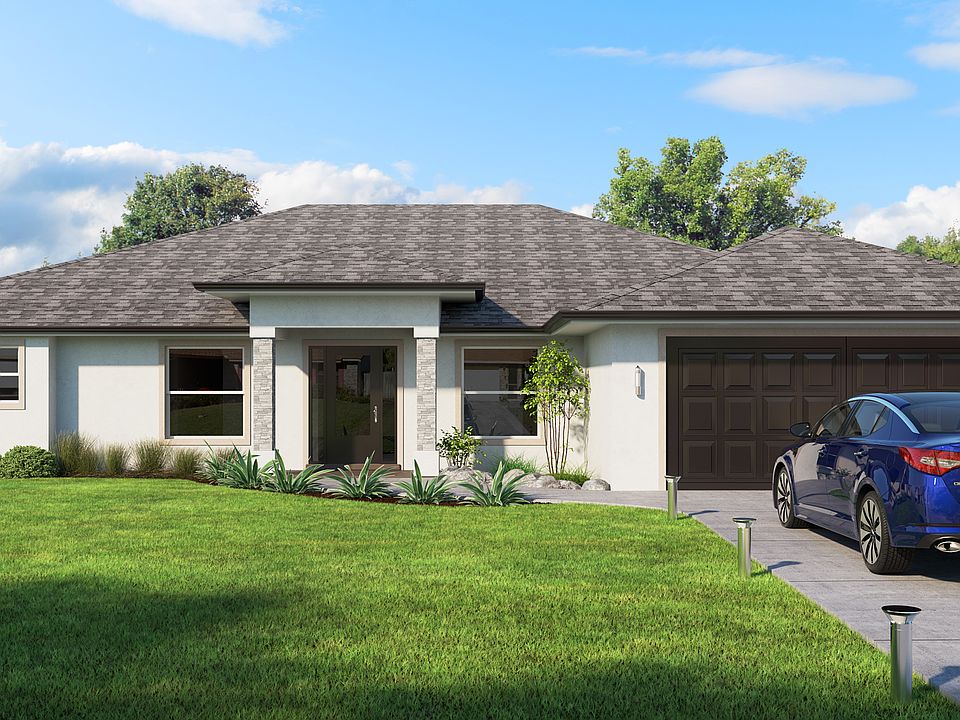 Beautiful brand new 4/2 with two car garage on canal front! This split plan will wow you with high vaulted ceilings, gourmet kitchen with 42 inch cabinets and stainless steel appliances. Master suite with two walk-in closets, en-suite bath with separate shower, his/her vanities. Do away with shutters, this home is included with hurricane impact resistant windows and doors. And large covered patio facing canal. Conveiniently located in sought out Unit 50 close to great schools and shopping. Soon to be completed early summer 2019!