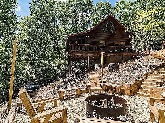 Welcome to your turnkey mountain escape—a highly successful short-term rental on Airbnb with a strong history of bookings and glowing reviews! This Rustic Charmer is perched at the end of a quiet road, offering unmatched peace, privacy, and breathtaking long-range mountain views that keep guests coming back. Thoughtfully updated and fully furnished, this cabin is truly move-in or rent-ready. It boasts two cozy bedrooms, a charming loft area ideal for a third sleeping space, office, or game room, and soaring ceilings that create an inviting, open feel. Enjoy cooking in the rustic pine kitchen with brand-new granite countertops, new Whirlpool stainless steel appliances, and ample cabinet space. The bathroom also features fresh granite, new sinks, and upgraded faucets. Additional recent upgrades include a brand-new HVAC unit, washer and dryer, and new flooring in the loft. The open living, kitchen, and dining area is warm and welcoming with wood interiors and floors, barnwood closet doors, and a corner stone fireplace for those cozy nights in. Outdoor living is just as impressive! Unwind under the stars in your brand-new Jacuzzi hot tub or gather around the professionally designed fire pit area, complete with lighting and electricity. The exterior has also been freshly stained and features new fascia boards and decking. Daily wildlife sightings—especially deer—add to the charm and natural beauty. Located in a scenic mountain community with private, stocked fishing lakes, this cabin offers both seclusion and convenience. Just minutes from the Benton Mackaye Trail, and centrally positioned between the vibrant mountain towns of Ellijay and Blue Ridge, it’s perfect for hiking, trout fishing on the Toccoa River, or boating on Lake Blue Ridge. Whether you’re looking for a profitable rental investment or your own peaceful getaway, this beautifully appointed cabin checks every box. Don’t miss this opportunity—schedule your showing today!