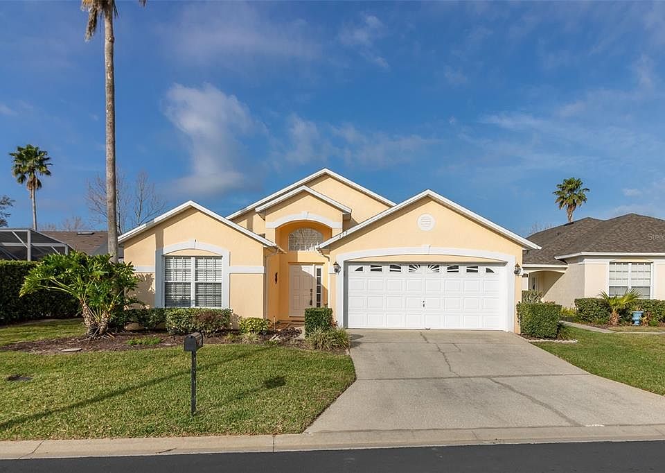 Welcome Home to this exceptionally maintained FULLY FURNISHED property with fantastic PRIVATE POOL & SPA and fall in love with your own tropical Paradise in the desirable GATED COMMUNITY Manors At Westridge near Disney. Only gently used as a FAMILY VACATION HOME (house has NOT been rented for years!), this impressive residence showcases SPECTACULAR LAYOUT ideally designed for family entertainment & relaxing living. Functional structural details include deep VAULTED CEILINGS, desirable OPEN FLOOR PLAN, beautiful TRANSOM WINDOWS filling space with tons of NATURAL LIGHT, multiple GLASS SLIDING DOORS and so hard to find EXTENDED COVERED LANAI OUTSIDE! Recently remodelled and fully equipped KITCHEN (2020) is featuring ample space to enjoy cooking experience: GRANITE COUNTERTOPS, modern CABINETS, elegant BACKSPLASH and newer STAINLESS STEEL APPLIANCES (range and refrigerator Dec 2021, microwave 2019).The cozy DINING AREA overlooks a sparkling pool & spa and opens up into a bright family room. Upgraded ceramic TILE FLOORS in all living areas & the kitchen; upgraded light fixtures throughout. DELUXE MASTER SUITE is featuring a COMPLETELY REMODELED OWNER BATHROOM with new SHOWER ENCLOSURE, upgraded DOUBLE VANITY with GRANITE COUNTERTOPS, designer framed mirror and 2 CLOSETS including a spacious WALK-IN! The two GUEST BEDROOMS are conveniently located at the front of the home. Recently updated GUEST BATHROOM features UPGRADED VANITY with GRANITE COUNTERTOP, beautiful framed mirror. This property stands out with UPGRADED FURNITURE, tastefully placed HOME DECOR and custom home accents throughout. Enjoy the convenience of designated LAUNDRY CLOSET inside with NEW WASHER (2022) and DRYER included in the sale! The PRIVATE OASIS awaits once you step outside to the LARGE SCREENED POOL DECK: impressive COVERED LANAI, inviting POOL, elevated SPA, lush privacy hedges all around - all this guarantee pure comfort to spend quality time alone or with friends and family. Major Upgrades include: NEWER ROOF (2017) and POOL RESURFACE (2018). This exclusive community Manors At Westridge features very reasonable HOA fees and NO CDD! This is such a perfect home for a smaller family, or, if considered as investment - leases are permitted including SHORT TERM VACATION RENTALS! Convenient and rapidly growing Four Corners in Davenport location near the major highways (US-27 & US-192); close to the area FAMOUS AMUSEMENT PARKS, shopping and dining, nearby championship public golf courses; easy access to Florida's best beaches. This is a lovely home for new owners to make their own - we welcome you to schedule a private showing and check it out!