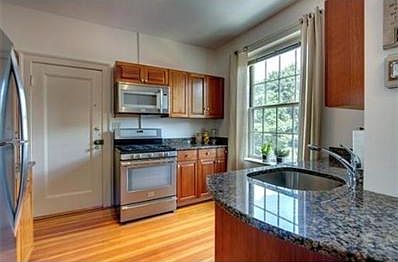 Locate one block to C & D line train and Dean Road Park, while also being close to markets and wonderful shopping and dining offered in Washington Square, this bight and sunny 3rd floor condo has hardwood floors throughout, spacious living room with beautiful woodwork, elegant dining area, large bedroom, tall ceilings, decorative fireplace, updated bathroom with Jacuzzi tub, and eat-in kitchen with granite counter tops & stainless appliances. Rent includes heat, hot water, one parking space, and one additional, out-of-unit storage locker. Available 7/1. NO pets and NO smoking please.