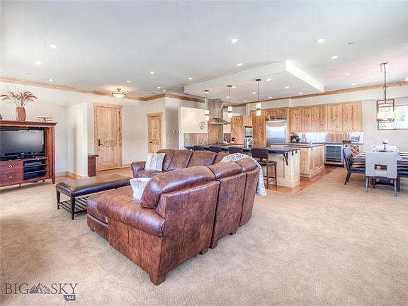 This 3-bedroom, 2.5 bath Beaverhead Penthouse encompasses the entire top level of this front row location, with a 2-car garage, elevator access and unobstructed views. The floor plan opens the living room to the kitchen and dining areas, with great light from the many windows, and a tasteful, functional, mountain modern decor. There is a king bed in the master suite, a queen bed in the second bedroom, and the third bedroom is set up with twin over queen bunk beds, sleeping 10-12 people total with the fold-out sofa. An additional bonus area provides room for separate groups to congregate and relax. The Clock-Out groomed skier return is out the door, providing great ski-in access, and ski-out is via the White Wing ski run on the west end of the neighborhood. This is a fabulous opportunity to own a fully furnished premier property in the highly desirable Beaverhead Condominiums, with easy walkability to the base area of the Big Sky Resort and all its amenities. Great rental history.