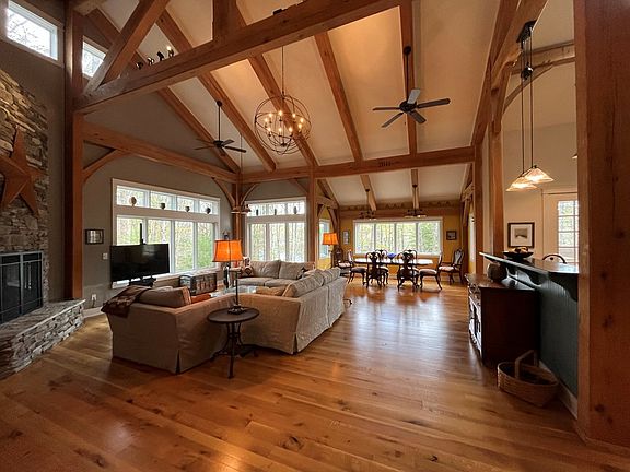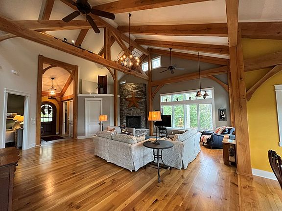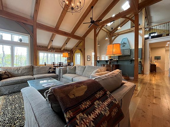 LAUREL COTTAGE is a stunning, custom timber frame on a private cul de sac with mature landscaping, stone walls, walkways. 4 bedrooms include master suites on main & lower floors. Oak floors throughout main level & in the cozy loft. Fully timbered open concept great room with views of forest & Chatham Lake. Charming 4 season sunroom. Spacious lower-level walkout boasts 11' ceilings & covered patio.