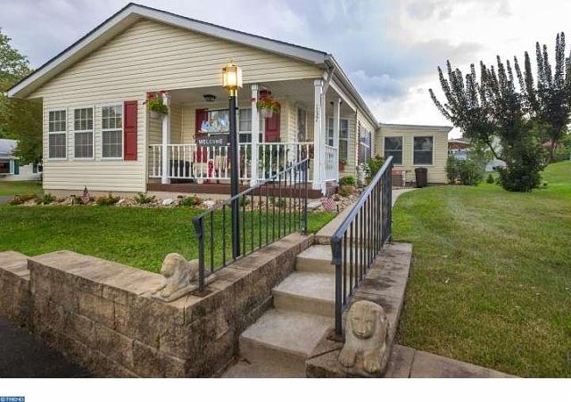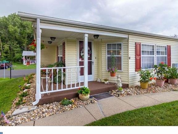 Come move right in all the work is done. This lovely Chalfont model is located on a corner of a cul-de-sac with views of open space from the front porch. Wonderful open floor plan that is perfect for entertaining. A bonus all year round sunroom with door to private 15 x 18 deck with stationary awning and open deck for summer enjoyment. The kitchen & breakfast room are light and bright and have laminate flooring. Two updated baths are waiting for you. Large master bedroom with private bath and huge walk-in closet. The second bdrm. has two closets. There is a nice laundry room with built-in storage that leads to the sun room. This home has lots of updates and is just what you are looking for. New Shed.