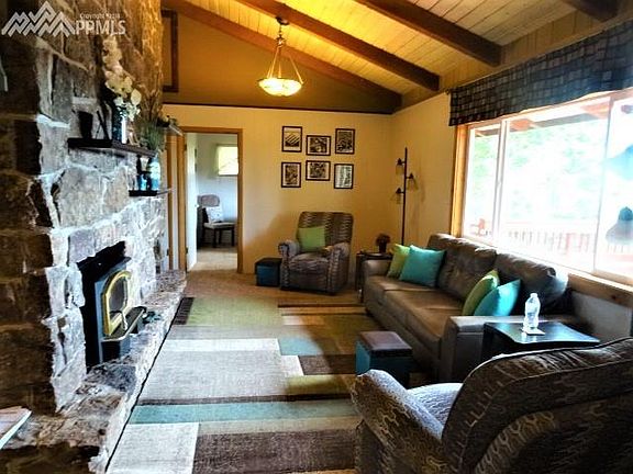 Amazing Two Bedroom, One bath Rancher in Rainbow Valley. Property Has a Million Dollar view with lots of privacy, and wildlife. House sits on 2.43 Acres, open concept, and a large deck with views out of this world. Look down on Dome Rock, or out as far as the Collegiate Mountains. PLUS Front yard view of Pikes Peak! Home has newer interior and exterior paint. Tongue and Grove Wood ceilings with Lopi Wood Stove Insert (Fireplace is not currently working, and is not safe to use. Call listings agent for information). House is sold as is but is in excellent repair with, New Furnace, New Washer, New Gutters, and New electrical panel updated to code. Fenced in Back Yard, Rock Croppings, and RV Parking. Almost all furniture included. Will go fast call and show today!!!!