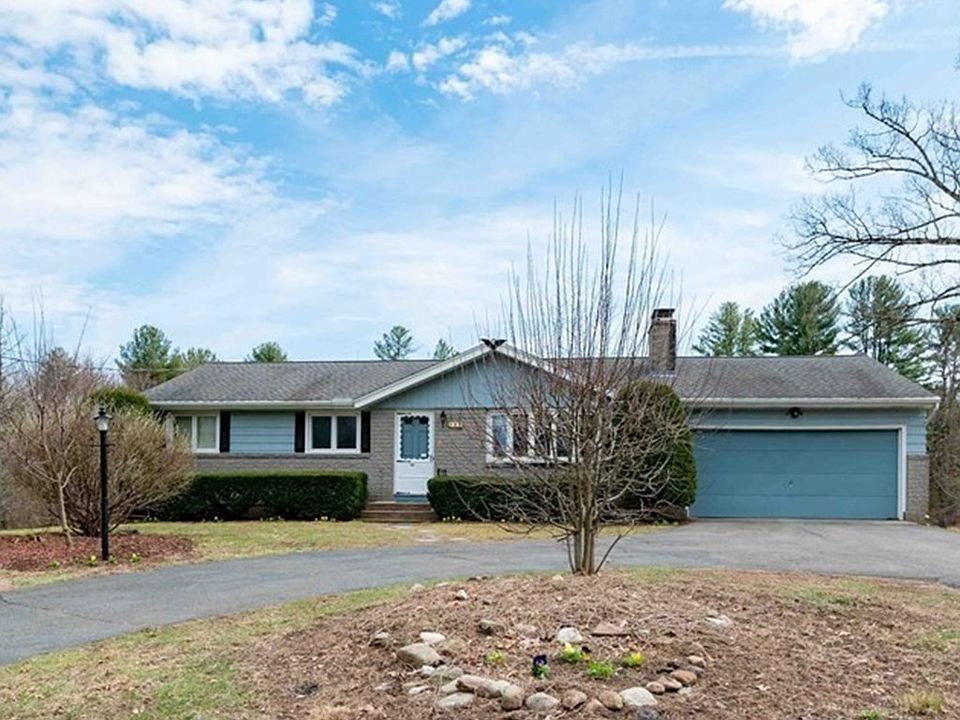 This charming ranch-style home on 1.65 acres is a must-see, offering plenty of space and natural light. As you step inside, the sunlight from the bay window catches your eye and shines onto the wood flooring. From there, the dining area & kitchen seamlessly flow bringing you to the updated kitchen with an abundance of cabinets and updated flooring. This home offers convenient one-level living with all 3 bedrooms and 1.5 bathrooms and laundry all located on the main level. The primary bedroom suite has double closets, gorgeous hardwood floors, and a private bathroom for added comfort. Enjoy the serene backyard from the comfort of your three-season porch, the perfect place to unwind after a long day. The basement offers an expansive multi-purpose room ideal for a media or game room, along with a workshop and walk-in storage area. 2 car garage is a bonus! Recent updates include a newer roof and a gravity-fed septic system installed in 2021, ensuring peace of mind.