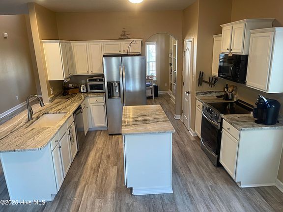 A Must-See Home with Exceptional Features! This stunning home offers a perfect blend of comfort and style. It features a downstairs study or den, a spacious bonus room over the garage, a formal dining room, and an eat-in kitchen nook with a bar for additional seating. The gourmet-style kitchen is beautifully appointed with upgraded appliances and granite countertops. The main living area boasts durable LVP flooring, while the upstairs bedrooms are carpeted for added comfort. The luxurious master suite includes a large walk-in closet, a stand-up shower, and a generous soaking tub for relaxing. Enjoy the outdoors with a large entertaining deck, and an electric fireplace in the cozy living room. The open foyer and second-story balcony add to the home's charm and spacious feel. Located in a highly sought-after neighborhood, this home is conveniently close to shopping and the Croatan school district. The heated square footage is justified by appraisal furnished by owners. Pets neg with owner approval $250 per pet and option owner charging $65 per month additional fee per pet. TBD by owner depending on the pet's.