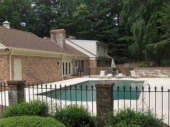 Custom built white washed pine walls and cabinets in kitchen and den. Oak and walnut wood flooring throughout. Pool room with wet bar. Situated on a wooded lot with private back yard.
