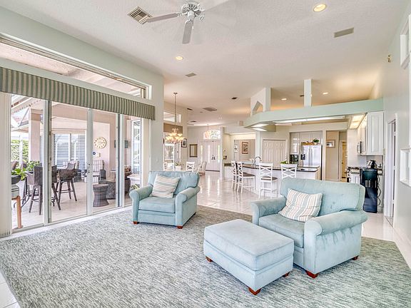 A true luxury estate with spectacular water views! This 3 bedroom, 3 bathroom estate home boasts a bright, open floor plan with volume ceilings and huge windows that provide tons of natural light. The large open kitchen flows seamlessly into the main living area, with direct views of the pool and patio throughout. Through the glass sliders you'll be greeted with panoramic views of the lake, an oversized screened in patio perfect for soaking up the sun, and a large pool complete with a dual spillover spa. The home has 2 newer AC units, updated flooring in the office and primary suite, newer pool heater and pump, an oversized garage, and a home generator. Nestled in the prestigious gated community of Preston at PGA National, with optional membership to 5 championship golf courses, and access to all of the resort style amenities.