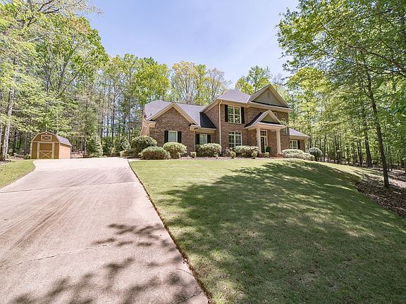 2 Story Brick home nestled on 1.69 acres. Private wooded setting off the road. Cul-de-sac location. Foyer entry into 2 story vaulted Family room with wood floors, built ins and wood burning fireplace. Formal Dining or Study. Eat-in Kitchen w tile floors, granite counter tops, breakfast bar, double ovens and pantry. Main level Master Bedroom with trey ceiling and en suite bath. Master Bath has dual vanities, tile shower, jetted tub and two walk-in closets. Split plan with Guest bedroom and full Hall bath on main level as well. Upstairs w landing, 2 additional Bedrooms with Hall Bath; plus Spacious Bonus Room. Walk in attic storage. Covered back porch. 2 Car side entry Garage. Storage Shed. Terraced backyard.