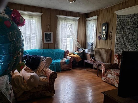 Spacious, solid home with 4 bedrooms, 2 baths, hardwood floors with lots of potential. Good sized rooms and nice layout. Ideal for handy person. Roof is newer, most replacement windows. Interior needs updating, chipped paint. Boiler is the original, probably over 100 years old. Will not qualify for FHA or VA financing. Detached garage, fenced in driveway. Please have pre-approval if financing.