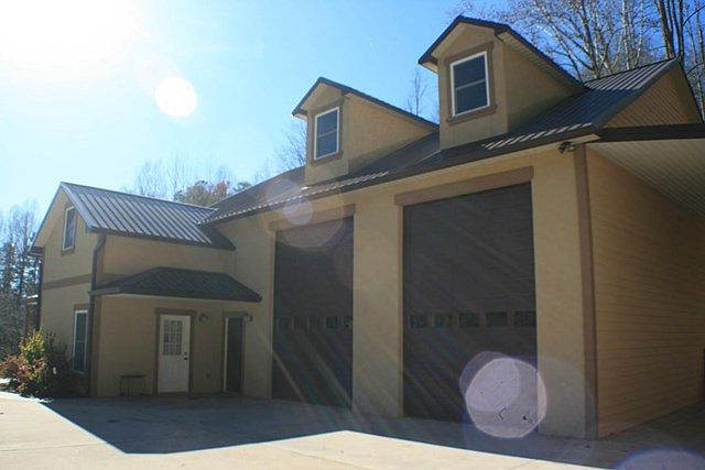 BEAUTIFUL AND CONVENIENT LOCATION IN A QUIET COVE. PAVED ROAD IN, CONCRETE DRIVE STAMPED CONCRETE. LOVELY 1 BEDROOM 1 BATH APARTMENT, 832 SQ FT W/STAINLESS STEEL APPLIANCES, DISHWASHER, GRANITE COUNTERTOPS, PRIVATE. GARAGE AREA HAS A FULL BATH W/CERAMIC TILE, 9' CEILING, 2 GARAGE DOOR OPENINGS, 10' X 14' TALL. WALLS ARE 16' TALL WITH CATHEDRAL CEILING 21' IN CENTER. 2 DOORMERS, 1440 SQ FT.. OF FLOOR SPACE. ALSO, 832 SQ FT OFFICE/BEDROOM SPACE LOCATED ABOVE THE APARTMENT BELOW, CENTRAL HEAT/AIR. BUILDING ALSO HAS 14' X 40' CARPORT AREA W/16' CEILING TO ACCOMODATE RV/BOAT. ORIGINALLY DESIGNED WITH THE IDEA OF FUTURE CHANGES. WALLS ARE TALL ENOUGH TO EITHER PUT A FLOOR THROUGH THE GARAGE AREA FOR STORAGE OR HOUSE DEVLOPMENT ABOVE, AND ADD TWO ADDITIONAL APARTMENTS ON LOWER LEVEL. ROUGH PLUMBING INSTALLED IN FLOOR FOR THAT. ANOTHER OPTION WAS TO TURN THE BUILDING INTO A HOUSE WITH THE POTENTIAL FOR OVER 4000 SQ FT OF FINISHED FLOOR SPACE. GREAT BUILDING FOR RECREATIONAL VEHICLES (MOTOR HOMES, ETC.) OR CAR COLLECTOR. COME TAKE A LOOK FOR YOURSELF.