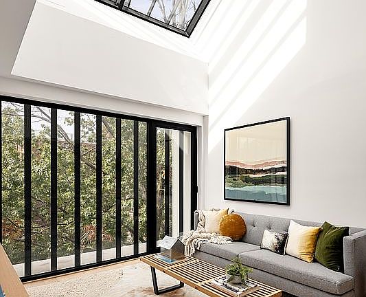 This super sunny and loft-like 2-bed, 2 bath condo with a private terrace sits just a half a block from Fort Greene Park, and is a rarely available gem in Brooklyn's coolest location. Surrounded on all sides by leafy green trees, a magnificent Olmstead designed park with off-leash dog hours from 9pm until 9am, and an abundance of award-winning restaurants, cafes and bars in literally every direction. You will not be disappointed with the abundance of light, the volume of space, and the rare opportunity to live in a boutique 6-unit elevator building with all the luxuries of a high-rise but the intimacy of the neighboring brownstones. This like-new condominium is the full floor of a uniquely designed modern building with private elevator access and a warm and minimalist aesthetic that makes the perfect backdrop for whatever your style. Offering as double height cathedral-style ceiling in the great room with a massive skylight, you can be assured of incredible sunlight all day long, no matter the season. A split layout promises a Primary suite in the back with south-facing exposure and a private terrace, a wonderfully proportioned living space in the middle large enough for dining and living, and a second bedroom in front with a flexible ensuite design that is perfect for guests, kids, or a home office.