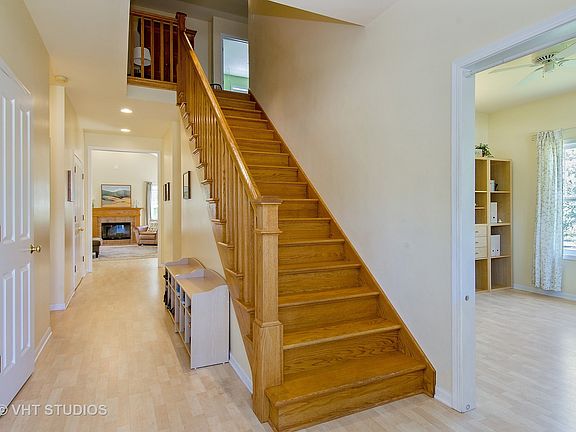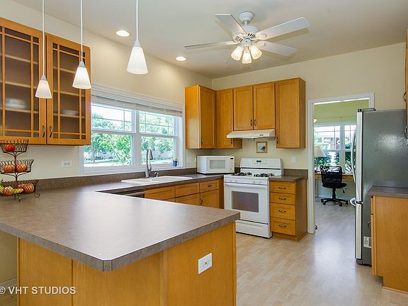 Lovely, bright and airy Dole Crossing home, adj to park gazebo area, ready for you to enjoy. 3bdr, 2 1/2 bath, w/ spacious 9-foot ceilings throughout main floor. Large kitchen w/ stainless fridge & dishwasher, & walk-in pantry. Large ea area overlooks spacious vaulted fam room (or liv room) w/gas and/or wood burning fireplace. Master bedroom suite has 2 walk-in closets & plenty of room for sitting area. Large master bathroom with whirlpool tub, separate shower, and double bowl sinks. Ceiling fans in all bedrooms, fam room & office. First floor separate dining room can be used as an office or den. Convenient first floor laundry room. Full unfinished basement ready for your ideas, owners will leave ping-pong table for your enjoyment. Beautifully landscaped, private fenced yard, with two-tiered patios, paved with bricks, and surrounded by lush trees. A/C and furnace less than 6 yrs old, 40 yr shingles on original roof. Ready for immediate possession. Walk to town & train! Show and sell!