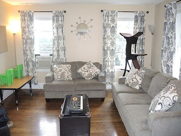 Great apartment in two family home is comprised of the second and third floor. The apartment has been recently renovated. Kitchen with granite counters, cherry cabinets and stainless steel appliances. New hardwood floors throughout and updated windows & bath. Laundry in unit. Third floor is perfect for in law apartment or work from home office/studio with it's separate entrance, kitchenette & bath. Beautiful manicured lot that backs up to conservation area and aqueduct walking trail. Great location on bus line, easy access to rte 9 & 128.