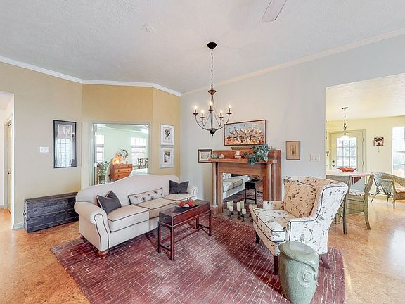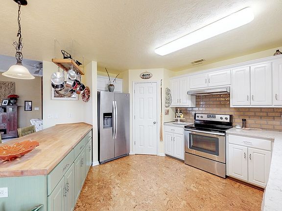 Fantastic all one level home with 3 bedrooms and 2 bathrooms! Attached garage! Architectural shingle roof with solar vent plus HVAC 2 years new! Beautiful cork flooring throughout main living areas and owners suite! Living room with crown molding and ceiling fan opens up nicely to dining room! Awesome kitchen with tile backsplash, quartz countertops and breakfast bar with butcher block counter! Dishwasher, and stainless steel stove and refrigerator may stay! Owner suite with french doors, tray ceiling and ceiling fan plus private bathroom has step in shower with bench! Two guest bedrooms, one with ceiling fan! Full guest bathroom with wainscoting and updated vanity and sink! Relax and unwind on the lovely patio with pergola and also enjoy the 12 x 14 deck area surrounded by shade trees in the backyard! Outbuilding great for storage may also function as green house! Front & back yard sprinklers! Exterior lighting on auto timer! Conveniently located near shopping, dining & I20 exit 5!