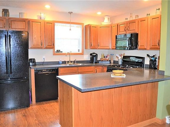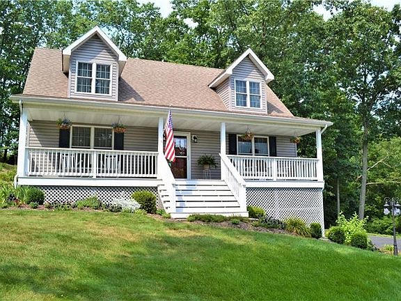 This gorgeous 3 bedroom, 2 1/2 bath Cape Cod sits on a beautiful 2.6 acre wooded lot. The freshly updated landscaped yard features a stone stairway to the rear patio and fire pit. The kitchen features Corian countertops, breakfast bar and laminate flooring that leads into the adjoining dining room. The spacious living room boasts large windows with lots of natural light. The main floor master bedroom has a walk-in closet and a master bath with dual vanity, tile shower, and water closet. You'll love convenience of the main floor powder room and laundry. Upstairs you'll find 2 large bedrooms that share another full bath. The basement is finished with another room that can be used as an office, den, or game room. A sunroom, central air, and an extra large 2 car integral garage add to the list of perks! A must see!