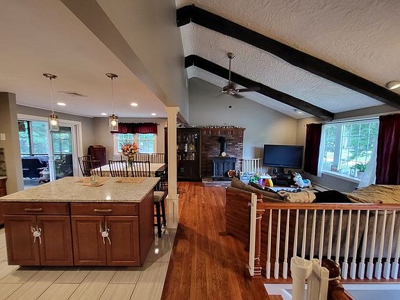 Quality Finishes throughout this 4 BEDROOM,2 BATH Raised Ranch with an Open Concept Design - Cathedral Ceilings and Beautifully Updated kitchen with Quartz counter tops and soft close cabinets with high end stainless Appliances - CENTRAL AIR/NEW ROOF/ GLEAMING HARDWOOD FLOORS/ HARVEY REPLACEMENT WINDOWS- Slider to a 12x12 screened porch off the main floor - Full working fireplace in the downstairs family room with an additional bedroom and full bath - 1 car garage and laundry area - Walkout to a large private backyard - New stamped concrete patio, New Above ground pool and large shed.
