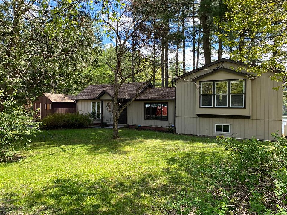 Prime Location on Goodyear Lake with 120' of lake frontage. Situated in the southern part of the lake in a peaceful setting directly across from undeveloped state land. This year-round home has a beautiful park-like yard that gently slopes to it's own little point on the lake. Just past the house to the east is Silliman Cove - the perfect place to kayak, paddle board or fish. The three bedroom house has been well maintained by the current owners. Recent improvements include two bathroom renovations, a new roof, new carpeting, new pressure & retention tanks for the water system, and several new windows. The house is nicely laid out with the master suite separate from the rest of the house. A cozy den has a propane stove and sliding door to the back patio. The lower level has two additional bedrooms, full bath, and laundry area. The main living level of the house is a nice open space with a kitchen and living room/dining room that opens to a large covered porch with beautiful views of the yard and lake below. Outside there is a large 11x28 two-room shed next the house and another shed down by the waterfront used for kayak storage. Both sheds have electric. The home is perfect for the buyer looking for a year-round lake home, a vacation home or rental property. For the past few years the home was used as a successful weekly rental and was consistently fully booked every week of the summer, as well as weekends in the shoulder season.This LAKE property won't last long!