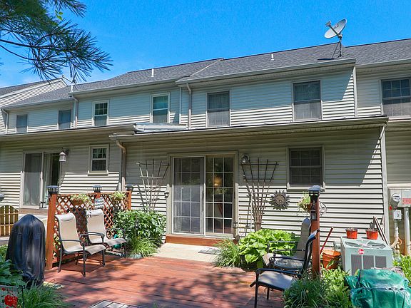 Convenient first floor living with 1st floor master bedroom suite featuring vaulted ceiling, walk-in closet, fresh paint, updated bath, and private access to rear deck/outdoor living space. Kitchen with hardwood floors has all updated appliances, and large pantry that can be easily converted back to first floor laundry. Finished basement provides space for recreation and additional storage. The 8x10 deck in the rear with privacy backs to mature trees, and a new roof was installed in fall of 2017. HOA covers lawn care, snow removal, water, and trash. Conveniently located near shopping, restaurants, and major highways.