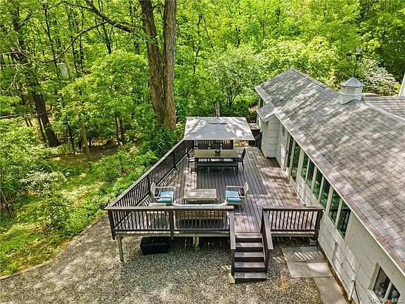 LOCATION, LOCATION, LOCATION. Your country oasis located on a bucolic private property. Dazzling rock outcroppings, accent landscaping and stunning mature trees. This warm and welcoming home features a sunny living room leading to a gorgeous patio surrounded by beauty. Updated country kitchen which leads to the picturesque deck. Family room can convert to dining. First floor laundry, additional entry (mudroom), two first floor bedrooms and two full bathrooms. Master bedroom and bathroom on upper level, additional studio for home office, studio, recreation room plus separate barn for storage. Endless possibilities in this open midcentury modern. Enjoy the charm, tranquility and lavish surroundings which feels as if you are in the Adirondacks but near town. Explore, hike (short walk to Briarcliff Peekskill trail), bike, grill, run, paint. Breathe, write, stretch, meditate, and star gaze- the good life! Newer central air, furnace, Anderson 400 windows, oak floors, and updated bathrooms.