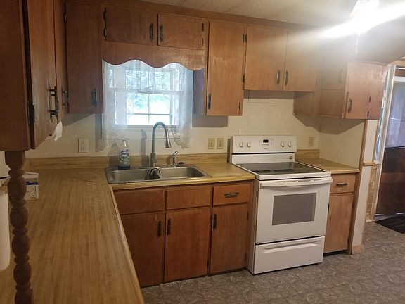 Double-Wide on a concrete foundation, farmers porch on front and enclosed porch on the back. Large three bay garage for big trucks and equipment and sheds for extra storage. Metal roof on house and garage. All appliances stay.