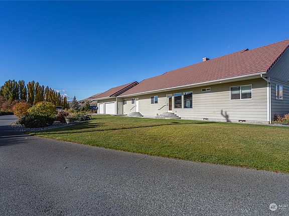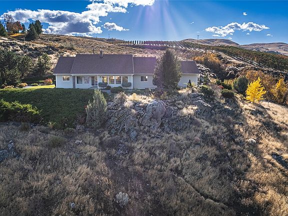 PRICE REDUCED $50,000! Enjoy an ever-changing panoramic view of the Columbia River from this elevated homesite. Apple & cherry orchards and a hayfield lie below. This home is secluded at the end of a paved, private driveway. Low maintenance established landscaping and curbed lawn with sprinkler system. Open design with living, dining and kitchen areas under vaulted ceilings. Large view windows and dual sided fireplace dominate the living room. 3/4 bath off large, Primary Bedroom with 2 additional, good-sized bedrooms. Office w/ fireplace and built-in shelving & storage. Cherry wood flooring totally refinished. Heated 3-car garage & new HVAC system. Take advantage of 4 seasons of recreation & sun in NCW.