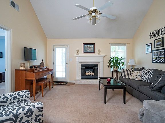 - Interior Features: Carpeted Floors, Fireplace, Pantry, Security System, Walk-in Closet, Cathedral Ceiling, Gas Logs
