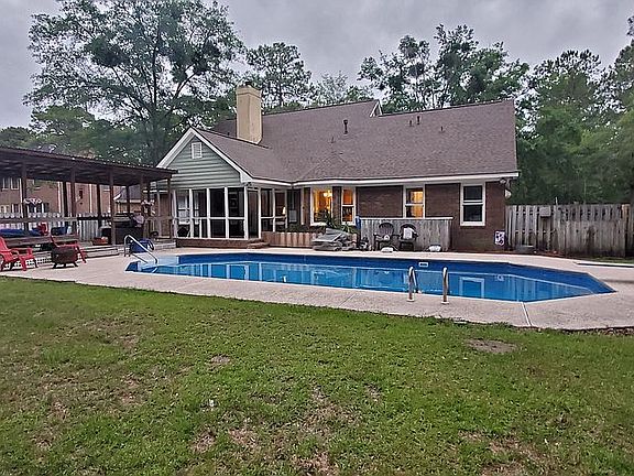 Home is 2800 square feet, 3 bedrooms, 3 bathrooms, formal dining room, front and back screened porch, large inground pool (liner a year old) with covered deck beside. Upstairs is a large bonus room 24x17 with closet and full bath. Front and backyard irrigation (Well for irrigation and pool, city water for house). Gas heat and water, electric air and solar.