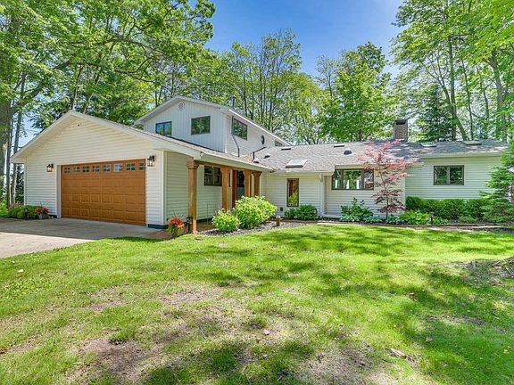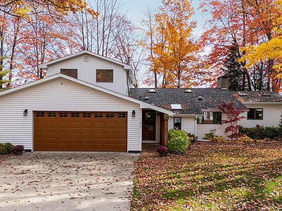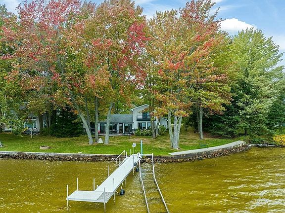 Lakefront living at its finest! Double lot with 110 feet of hard sandy bottom frontage on beautiful Lake Mitchell. Lot is level and tastefully landscaped with a large lakeside yard space. Low traffic location is perfect for peaceful enjoyment of the lake. Retreat to this serene three bedroom, three bath home, nestled along the shores, where you can swim, fish, boat and sunbathe without ever having to leave the property! This is an ideal package for up north getaways and outdoor enthusiasts. Lake Mitchell is an all-sports lake that is connected to Lake Cadillac via navigable boat canal giving you the use of 3,730 surface acres of water to explore. Home has an amazing 2,284 square feet of living space, while still emanating a cozy cottage feel. Warm, inviting interior with original timber beams with post and beam vaulted ceilings. As you step into the home you will love the recently updated, fully equipped kitchen featuring granite counter tops, stainless steel appliances and heated floors. Eat-in kitchen bar, as well as an open concept dining area. Gorgeous living room with big stone fireplace and huge windows that all provide lakefront views. Large main floor primary bedroom with walk-in closet and private bath with a custom tiled shower and soaking tub. Two additional bedrooms and bath upstairs, one of which has its own private lakefront deck to view stunning sunrises. Most rooms feature outstanding views of the shoreline. There is also a spacious den with pullout sleeper sofa. Home sleeps 10 people comfortably. Seller has very recently replaced skylights, added a wood accent wall, and is including all furnishings in this purchase including the beds which are less than a year old with minimal usage. Other features include central air conditioning, natural gas heat, seven new Anderson patio doors, redesigned main floor laundry room and 55 feet of new seawall. Outside, there is a huge deck with a gas grill, a big grassy lawn area, and a fire pit close to the lake.