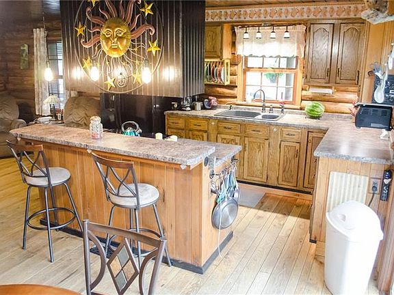 Welcome to the great outdoors! This custom built log cabin home is nestled at the edge of Hillman State Park. The wrap around porch and deck is perfect for enjoying the scenery. Cozy up in the open concept living room, kitchen and dining area. 3 bedroooms and the main bath are also located on the first floor. Host all the gatherings you desire with the fully equipped bar in the basement with kitchenette and bathroom! 1.06 acres comes with this beauty! This home was meticulously built and has been lovingly care for and enjoyed. With easy access to the gamelands and just a short drive to the airport and shopping, it's the best of both worlds!