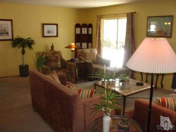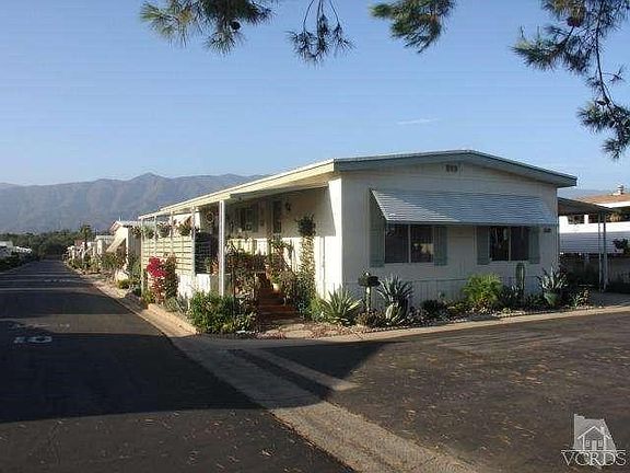 JUST MOVE IN!-That's all you will need to do with this beautiful home. Located in Ojai's only gated park, this corner lot location offers great mountain views from the private front deck. Lush landscaping features native plants and year around color with minimal effort. New heater and two new air conditioning units provide reliable comfort all year. Kitchen features newer Maytag appliances and Silestone brand sink. Beautiful warm color scheme gives a designer touch that would compliment any style. Washer, dryer and refrigerator are included as are many of the hanging planters and potted plants. Reasonable space rent and conveniently located across from guest parking lot. You don't want to miss this one!