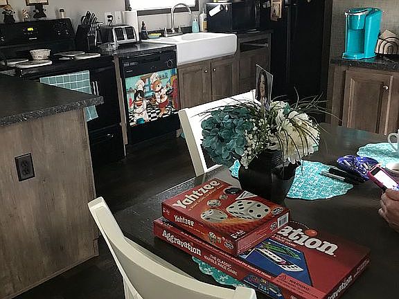2018 mobile home with front porch and back deck off street parking in Ashley mobile home park