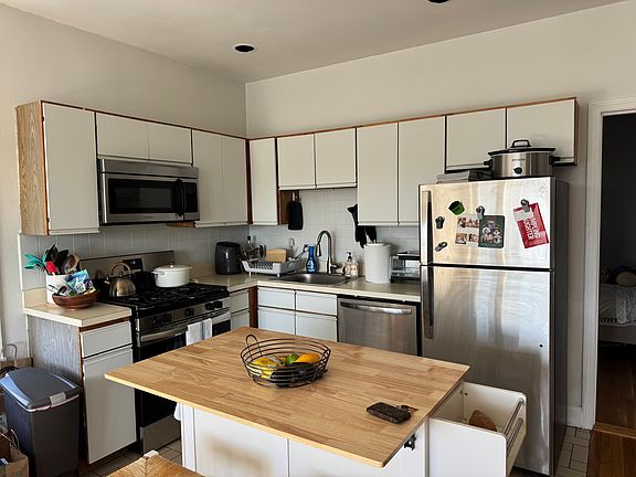 Location, Location and a COMMON ROOF DECK!. This 2 bedroom penthouse unit is steps from East/West Broadway and offers hardwood floors, exposed brick, spacious living room with city views, lots of natural light, laundry in building. Each bedroom fits a queen bed. No pets. Move in Sept 1, 2025 One year lease. Tenants are responsible for heat, electric and cable bill.