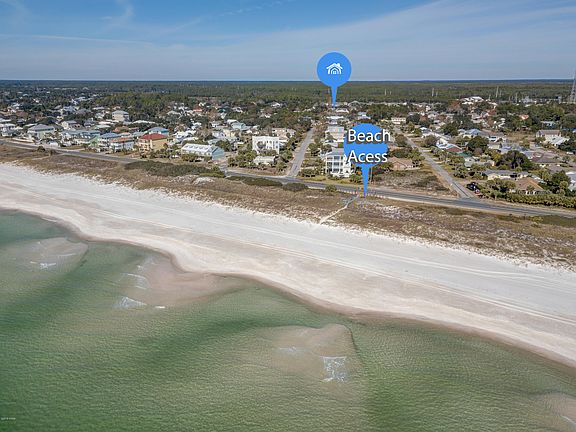 Family Beach Retreat! 1 Block from the Sugar White Sand sits this spacious 4 Bedroom 3 Bath Home with 2 Master Bedrooms. The Large Lot with RV Parking is complimented by Pool and plenty of Parking. The home offers new; roof, gutters, insulation, hot water heater, heating & cooling systems, pool filtration system, septic drain fill, out building, security cameras, tile floors, Plantation Shutters, Lawn Well & Sprinkler System, remodeled bathrooms and landscaping. The large open Kitchen and Dining Room will more than host your next dinner party while gently flowing over into the climate controlled Sn Room and Large Living Room. Located on the West End of Panama City Beach in the Sunnyside Area.