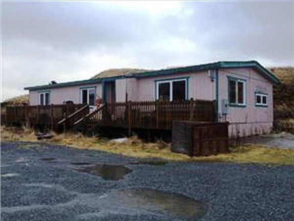 Ranch style 3 BR, 2 BA modular home waterfront home in Dutch Harbor. Larger deck/patio and covered entry. Property has endless possibilities.