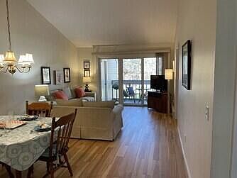 Updated, air conditioned (both bedrooms and the living area), two bedroom / two bath second floor end condo unit located in Eaton Village of Ocean Edge Resort. Centrally located between two of the largest pools at the resort and close to the Links restaurant, this Freshly Painted condo features Gleaming New Wood Floors with an open layout. Private deck off the living room overlooks the golf course. Fully equipped kitchen with washer and dryer. Primary bedroom with en suite bathroom. Second bedroom has full bath right across the hall. Strong rental history. Furnishings (less personal items) included.