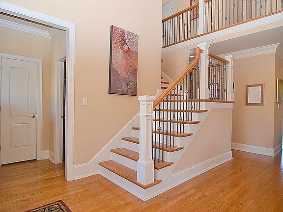 Elegance is evident from the moment you arrive. Walking up you find the rocking chair front porch where you can sit & chat with a neighbor, or enter & find detailed spaces like the dining room with coffered ceiling & a kitchen fit for a master chef with Viking Pro appliances (including a 6-burner gas cooktop!) Relax on the screened porch or host a party with plenty of entertaining space both indoors & out. Upstairs is an extra space you can use as a studio or playroom. Colvard Farms living is beckoning!