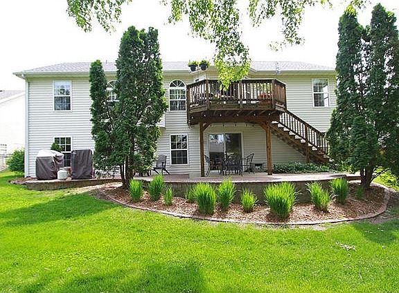 This is an amazing four bedroom house! Enter into the generous foyer area and you can't miss the openness of the tall ceilings. Windows line the view of the back of the home and allow for so much natural light to welcome you as you enter. A gas fireplace in the living room is the perfect place to enjoy a relaxing evening. The eat-in kitchen has beautiful wood cabinets and a pantry. Sliding doors lead out to the upper level deck that overlooks the nicely landscaped back yard. It's the perfect place to sit and sip your morning coffee. Kitchen, dining room and living room are all easy access and provide great space for hosting a get together. Master bedroom offers dual closets for plenty of storage. Master bathroom has a separate tub and shower as well as his-and-her sinks. Finished walk-out basement has built-in kitchen/cabinet area with a full sink and a space for a mini-fridge to be tucked away below. Step onto the ll patio and simply enjoy. Perfect for entertaining.