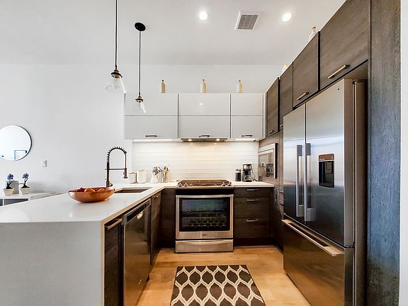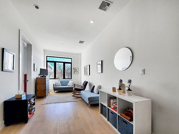 This sun filled 2 bedroom 2 full bathroom 1,026 sq/ft condo was newly built less than 5 years ago in the heart of Bushwick. Conveniently located 4 blocks from the J and L trains. Brooklyn charm with a luxury condo feel. 9.5 foot ceilings, large windows, white oak floors, in unit washer/dryer, and a kitchen designed for a chef. The kitchen includes Caesarstone waterfall countertops, premium custom german cabinets from Nobilia, whirlpool stoves and dishwasher, Fisher- Paykel refrigerator and a built in GE Profile microwave. The large master bedroom comes with an en-suite bathroom and a walk-in closet. Also included is a 46 SF private storage unit in the basement. You will be steps away from Tiger park which has basketball courts and a track for easy access to outdoor activities. Video tours are available upon request.