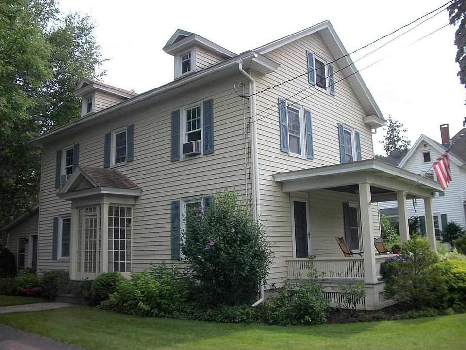 Cozy and welcoming, this home has been well maintained by one family for over 30 years. From the well-kept flower beds and private backyard to large front porch for summer relaxing , this home possesses many unique characteristics that make it a real gem. Spacious rooms on both floors with hardwood floors. Living room with fp and built-in book shelves. Private sun/family room with vaulted ceiling and 3 walls of windows. New high-efficiency natural gas furnace in 2013. Convenient to everything.