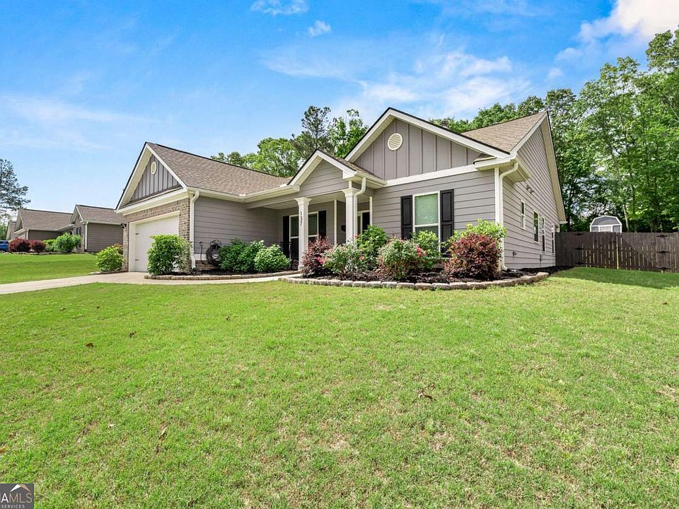 **Seller offering $5,000 to Buyer's Closing Costs!** Evergreen Ridge is a quaint single-street community with craftsman homes on sprawling lots! The owner has updated the home since purchasing it new 4 years ago, including new lighting fixtures, outdoor shed for lawn and outdoor equipment, built-ins in the living rooms, privacy fence with upgraded stain for longevity. This is a one level home that has a primary bedroom separate from the secondary bedrooms. There is no carpet in the home, double-paned windows, ceiling fans, vaulted ceiling and open living spaces are wonderful for every day living and entertaining. The living room has windows that provide a lot of natural light, as well as a brick surround fireplace flanked by beautiful custom cabinets on each side. The kitchen has granite counter tops, plenty of cabinet space and pantry, large center island with room for barstools and a spacious breakfast area. Sit on the back porch and enjoy privacy overlooking the expansive back yard, and don't miss the shed that is included and offers additional storage. Statham has a quaint downtown and is very convenient to highways and Athens. Don't miss this well maintained home with desirable upgrades in a great location!